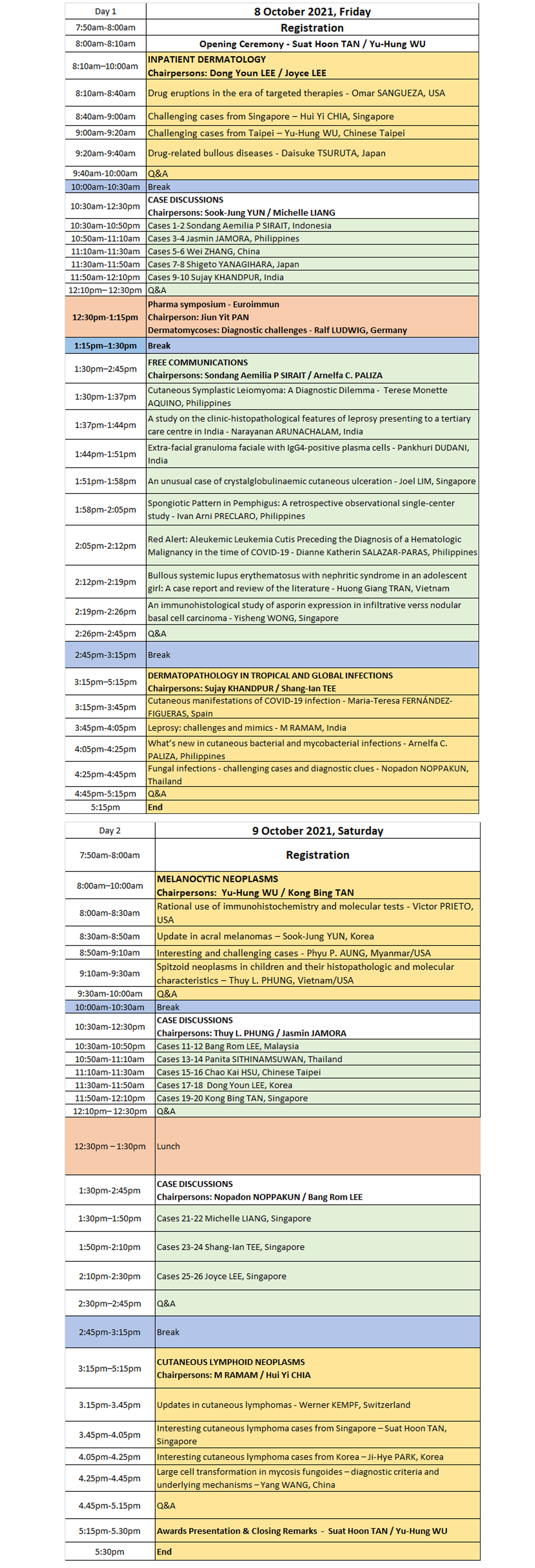 We have an exciting programme at this meeting which will comprise of themes of dermatopathology in tropical and global infections, in which we will cover what is currently very topical ie the COVID-19 infection, inpatient dermatology, melanocytic neoplasms and cutaneous lymphoid neoplasms. We are fortunate to have Maria-Teresa Fernández-Figueras, Omar Sangueza, Victor Prieto and Werner Kempf as our keynote speakers. The sessions will each feature speakers from Asia who will bring the perspectives of their dermatopathology practice and the rich local experiences in this part of the world. The case presentations will likewise be representative of the myriad of cases from across Asia.