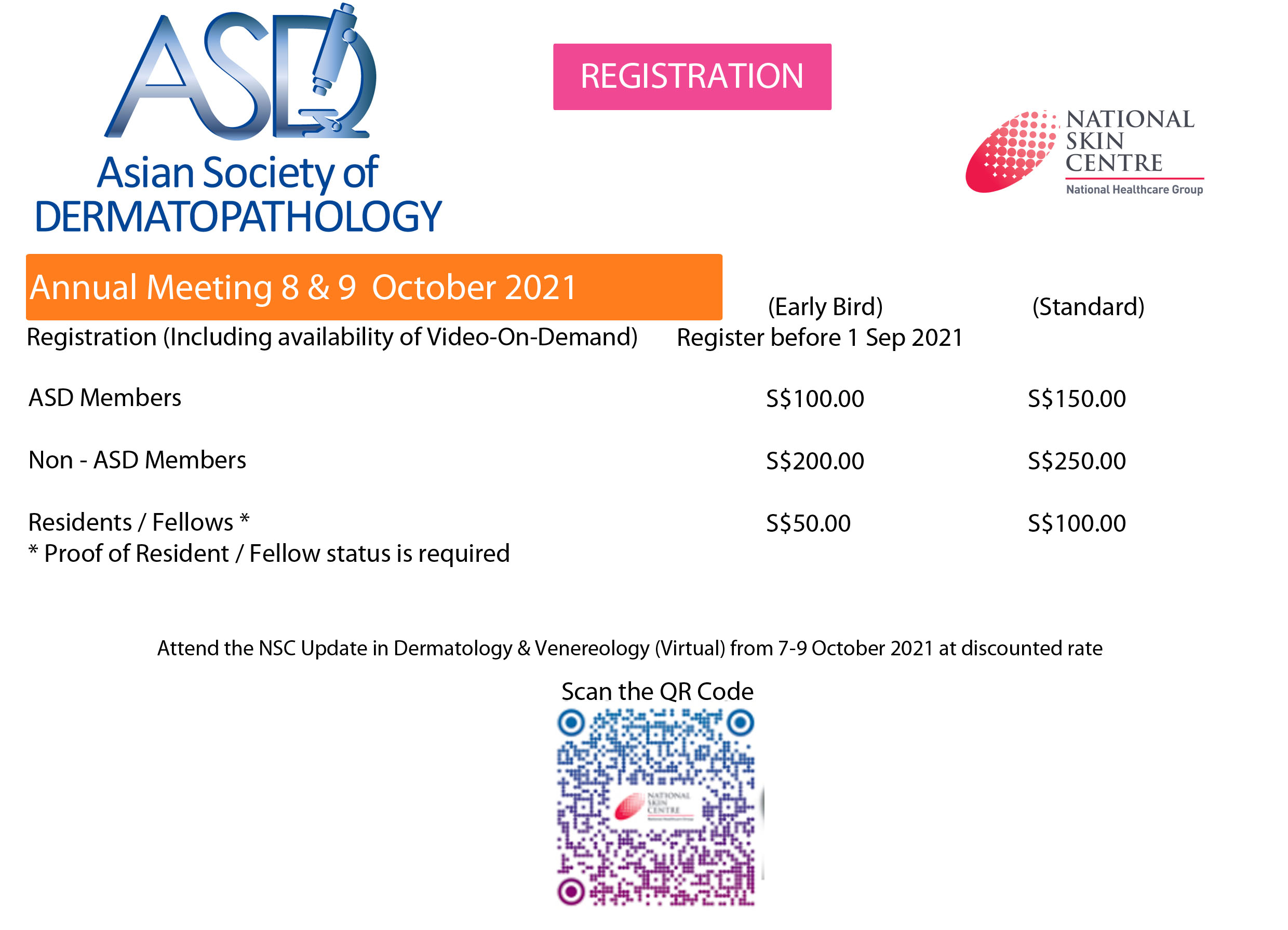 Asian Society of Dermatopathology Annual Meeting that will be completely virtual. We are privileged to be hosting this from Singapore on the 8th and 9th October 2021. This year marks the 3rd Annual Meeting of the ASD and the decision to hold this amidst the ongoing pandemic is the immense sense to celebrate what we have achieved as a young professional society for dermatopathology and to restore educational opportunities and sharing of expertise to a degree of normalcy. Indeed, in the virtual sphere, this brings greater opportunities in doing more in content and speakers. We are indeed privileged to have a slate of world renowned speakers and experts in the field, joining our faculty from all throughout Asia itself.