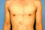 Brown cafe-au-lait brown spots of neurofibromatosis.