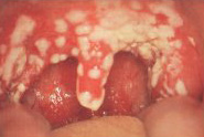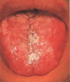 It is an infection caused by yeast. It is sometimes seen in children and also in adults with poor fitting dentures, taking broad-spectrum antibiotics or oral steroid or suffering from diabetes or from depressed immune system. White, creamy patches appear on the oral mucosa or tongue which will leave raw red spots when the white patches are scraped off. Treatments include oral hygiene, elemination of predisposing factors and the use of topical or/and oral antifungal agents. Patients should consult their doctors to be investigated. They should not self-medicate as an underlying disorder has to be excluded.