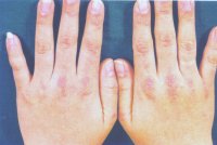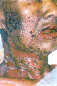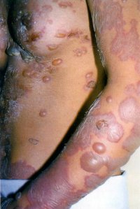 Fig.3, the disease is marked by skin blisters and erosions with severe soreness and ulceration of the mouth and genitals. This skin disease is always associated with a cancer of the cells of lymph glands.