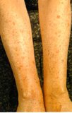 - Solar lentigenes are brown spots 1 cm or greater in diameter, occurring usually on the face and back of the hands.